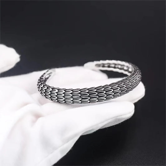 Erkekler İçin Özgün Tasarım Vintage Gümüş Bileklik – Ejderha Pulu Desenli