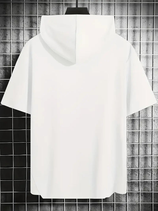 Erkek Oversize Kısa Kollu Kapüşonlu Tişört – Saf Beyaz Şıklık