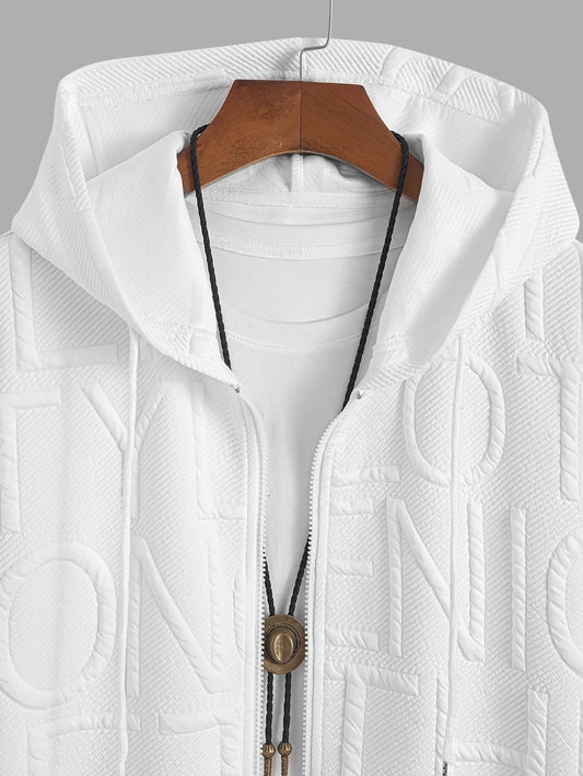"Kabartma Desenli Beyaz Kapüşonlu T-Shirt – Temiz ve Çarpıcı Stil"